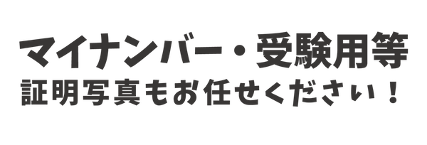 マイナンバーや受験用、パスポートやビザなどの証明写真も光映写真館にお任せください。厳しい規定にも対応しております。サイズや背景色等のご不明点がございましたらお問い合わせください。